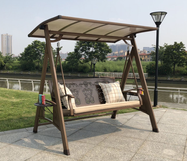 主結(jié)構(gòu)采用鋁管彎曲,焊接成型后打磨,后經(jīng)恒溫烤漆。外面面采用優(yōu)質(zhì)塑木拼接而成。