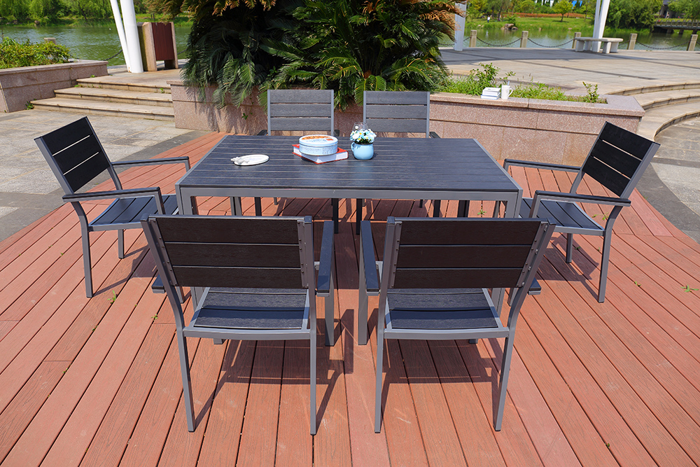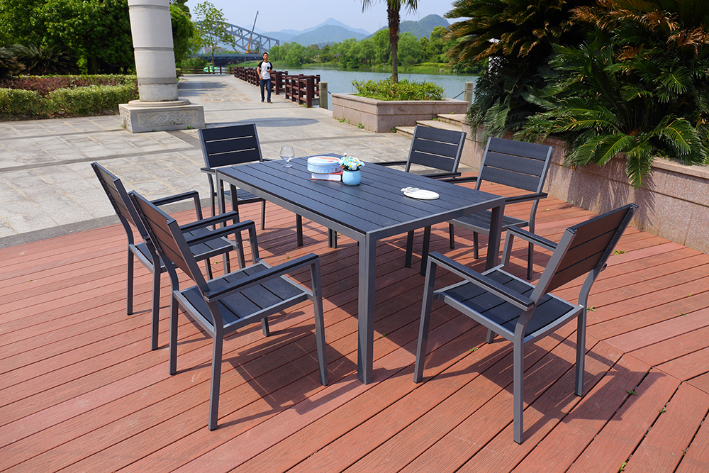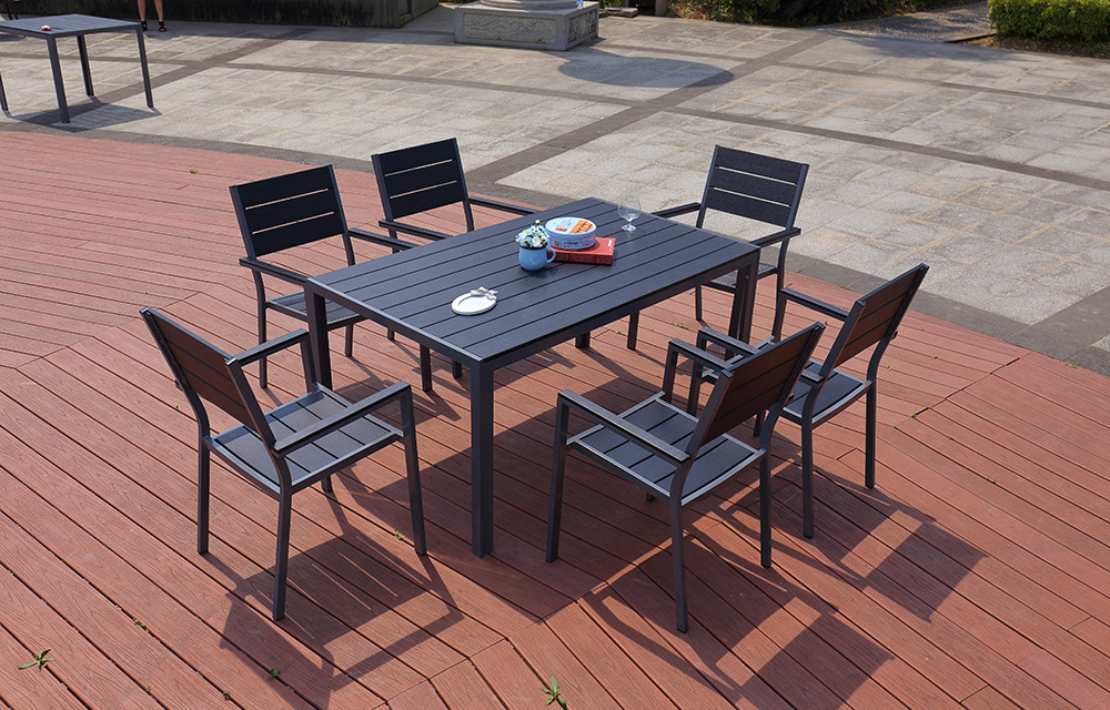 主結構采用鋁管彎曲,焊接成型后打磨,后經(jīng)恒溫烤漆。桌面座板面采用優(yōu)質塑木組裝而成.
